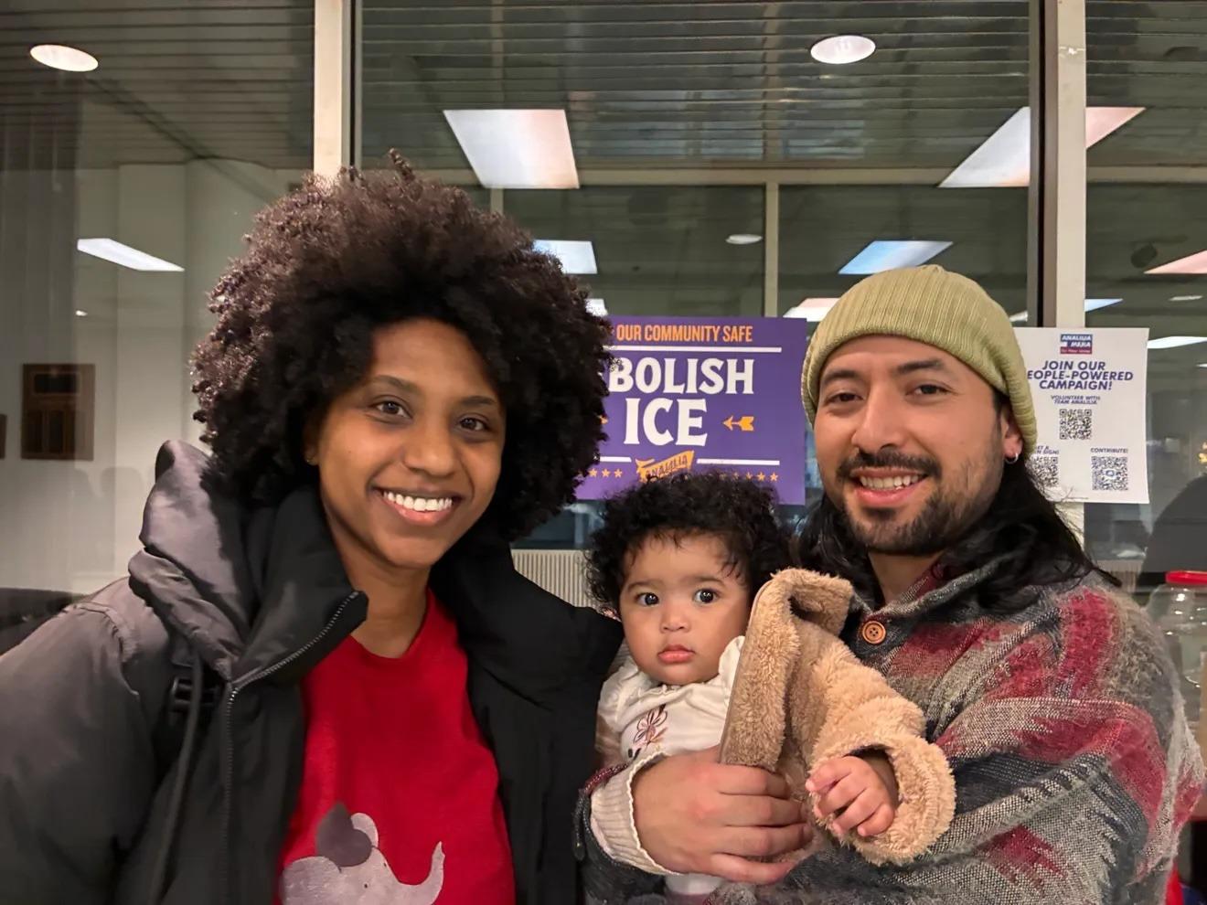 Olivia y Edison Guamba con su hija en Maplewood, asistiendo a una sesión de capacitación para residentes en encuentros con ICE, organizada por la Campaña de Analilia Mejía en el Distrito Congresional 11. Mary Ann Koruth