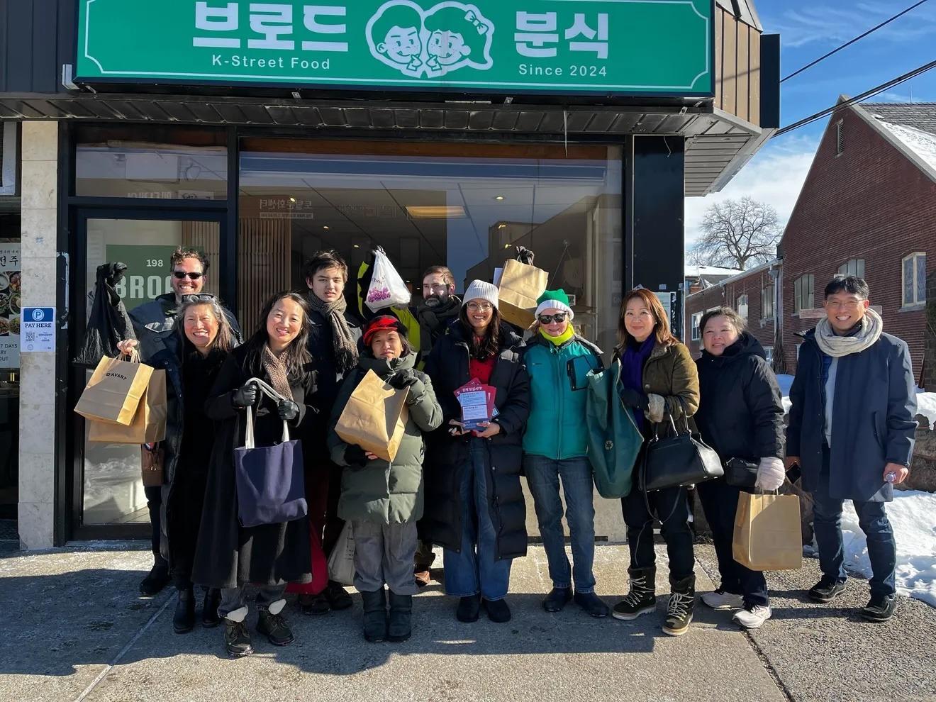 Miembros de AAPI-NJ y amigos sostienen bolsas con compras en negocios locales en solidaridad con Palisades Park, tras los arrestos de ICE. Mary Ann Koruth